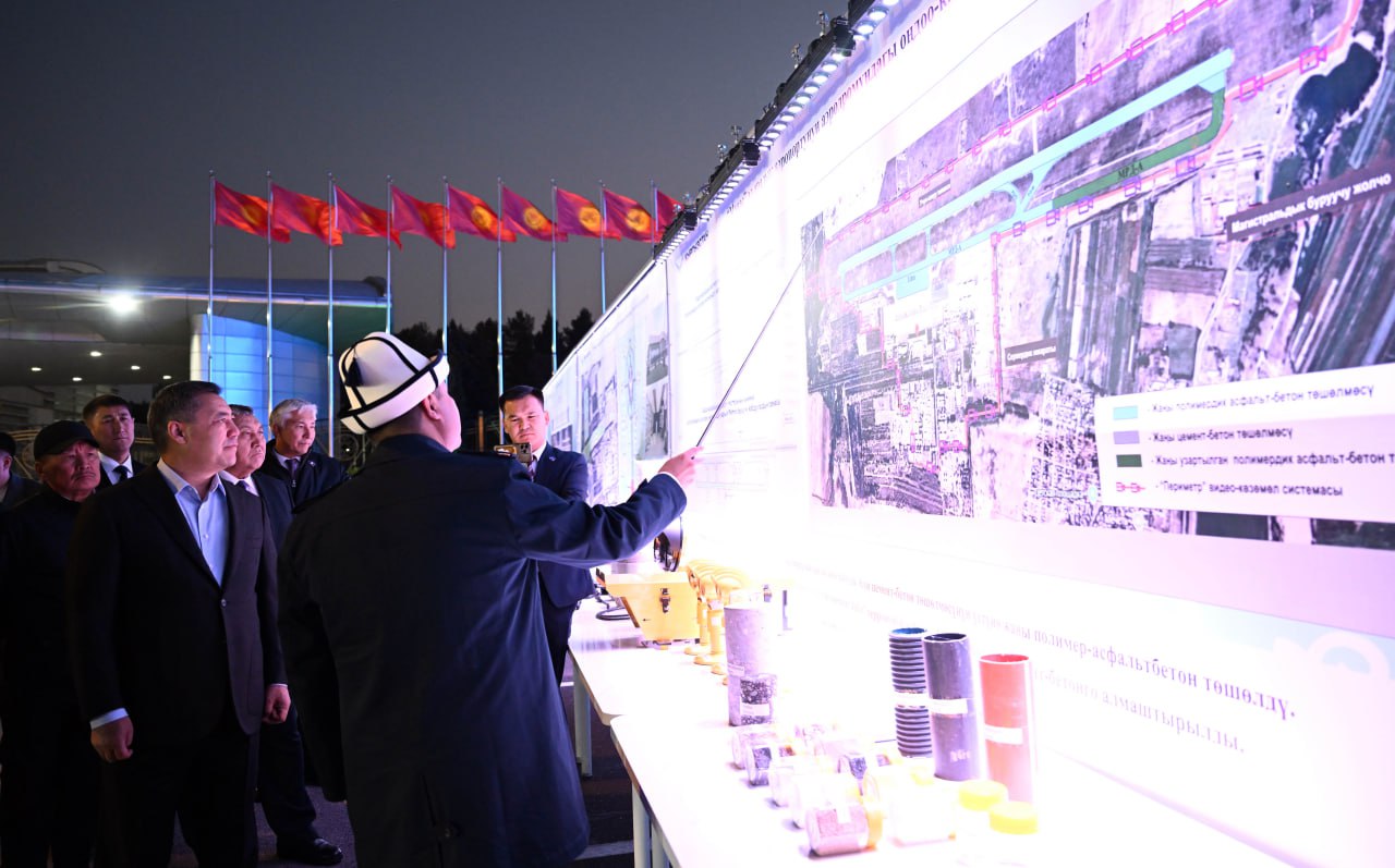 Далее Садыру Жапарову показали завершенные ремонтные работы на взлетно-посадочной полосе.