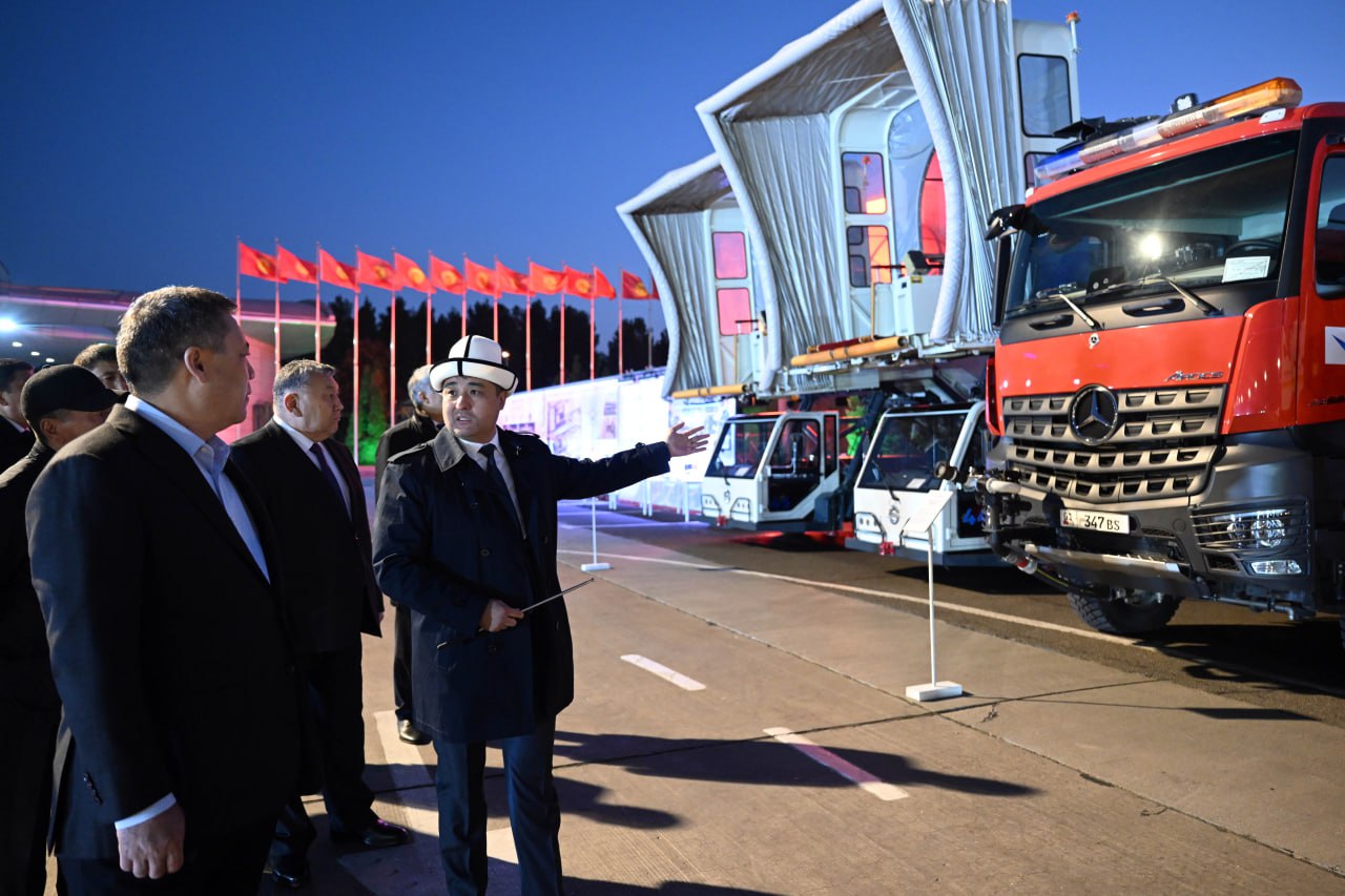 Президент также ознакомился с новой специальной техникой ОАО «Аэропорты Кыргызстана», закупленной с 2023 года.