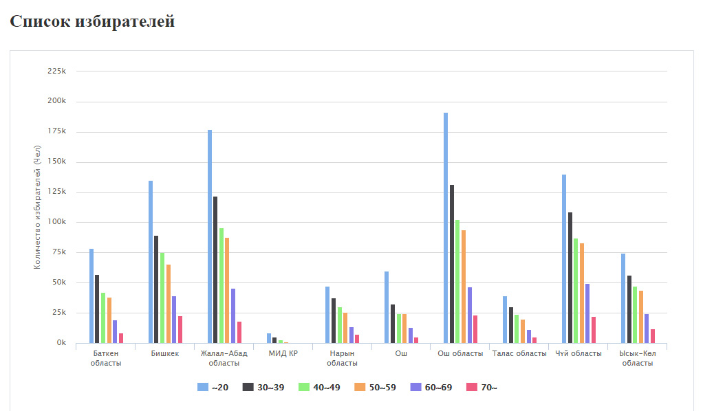 Всего в выборах президента Кыргызстана приняли участие 3 миллиона 25 тысяч 770 человек. Ознакомиться со списками проголосовавших можно по ссылке.