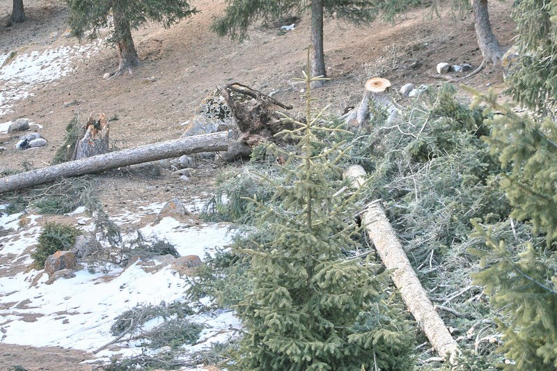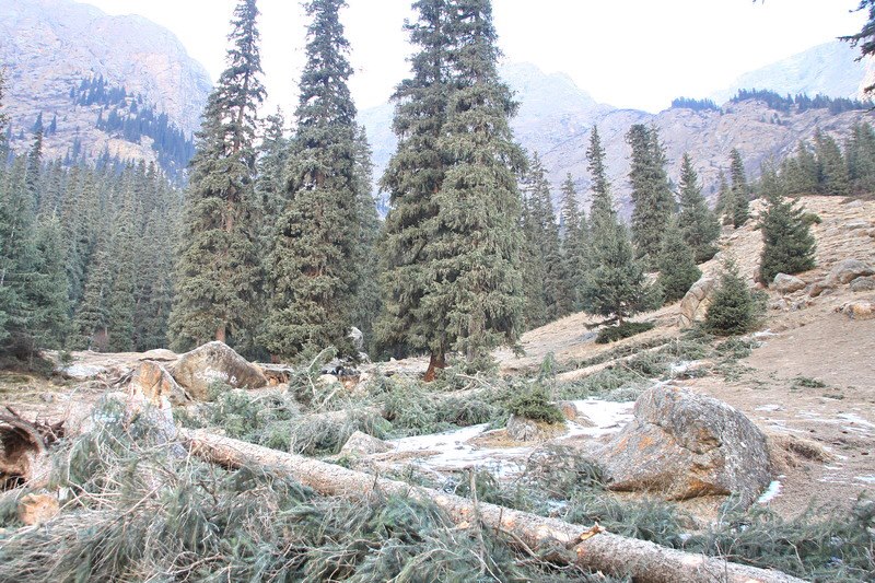 А теперь представьте, что ничего этого нет! Там, где должна быть лесная чаща, - прорубы с гниющими пнями. Там, где были лесистые рощи, - голый камень с уничтоженным почвенным покровом, готовый во время ближайшего дождя сорваться с горной кручи и грязной массой селя сойти в долину, уничтожая все на своем пути. Что это, спросите вы!? Это «деятельность» Каракольского лесхоза с 2012 по 2014 год под руководством Кубана Токомбаева», - сетует Влад Ушаков.