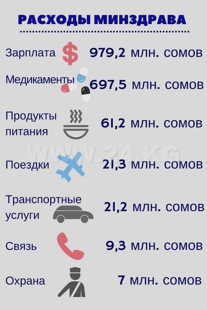 На здравоохранение вместо запланированных 13 процентов выделяется около 10 процентов от расходов республиканского бюджета. Системе не хватает более 4 миллиардов сомов. Из выделяемых средств менее 10 процентов расходуется на закупку лекарств.