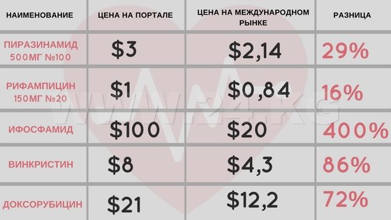 Еще один вопиющий факт – цены на лекарства, которые устанавливают больницы при объявлении тендера. В некоторых случаях они завышены в 4-5 раз!